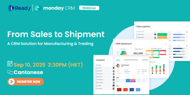 Date & Time: Sep 10, 2025 2:30 PM in Hong Kong SAR. Join us for an insightful webinar on streamlining your sales and shipment processes with monday.com CRM — the all-in-one platform that takes you from lead generation to final delivery seamlessly.